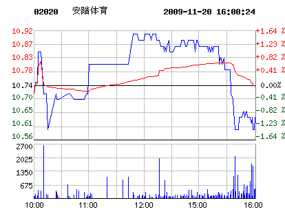 11月20日安踏體育股票行情走勢