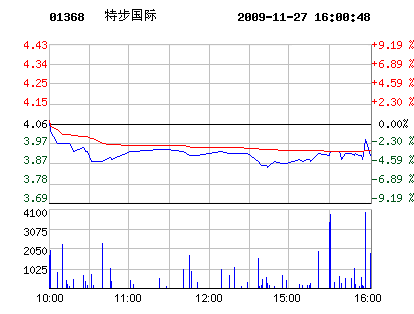 | 特步國際 代碼:01368.hk | 3.86 -0.20 -4.93% 2009-11-27 16:00:00 |
