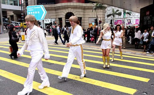 中國鞋網11月28日訊,ABBA MANIA一直以來都是以翻唱1979年瑞典傳奇樂隊ABBA的經典金曲為主及其樂隊成員亦因外貌及造型都很像ABBA,所以在短短數年間紅遍多個國家。昨日他們專程到港為本月26日的“ABBA狂熱”巡迴演唱會作準備,今日下午時分各人在演唱會前專程到中環游覽一番,先行認識一下香港的地道特色,見他們走到一些在街邊幫人擦皮鞋的小販鋪,四人都十分好奇,雖然他們所穿的不是皮鞋,亦一於好少理,上前試試被人“刷鞋”的知味,由於他們的衣著出眾,再加上這樣的奇怪行為,所以即時吸引了不少途人圍觀,有些還要求合照,在觀摩完香港特色后,四人乘上兩架專程為他們安排的古董車前往表演場地進行採排,今次表演舞臺亦都為迎合他們,專程裝成很有70年代的感覺,相信當晚一定會帶給觀眾難忘回憶。
