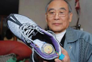 中國鞋網12月03日訊,從外表上看,這雙運動鞋很普通,可夜晚時將它穿在腳上,鞋子就會發出光線,足以照亮回家的路。更為神奇的是,這雙會發光的鞋還能為手機電池充電(上圖)。這雙發電鞋的發明者就是66歲的成都老人石才俊。