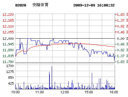 12月09日安踏體育股票行情走勢