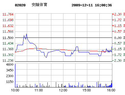 12月11日安踏體育股票行情走勢