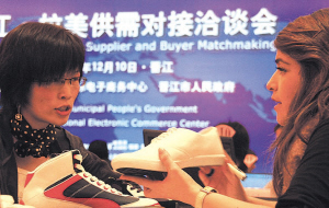 晉江市商務(wù)局提供的一份數(shù)據(jù)也從某種程度上說明了拉美市場正逐步發(fā)展成為晉江出口企業(yè)偏好的新興市場。“2007年、2008年及2009年截至11月份,對拉美國家的自營出口分別為1.06億美元、1.47億美元、1.07億美元,分別占晉江市自營出口的10.35%、11.88%和9.31%。這兩年來,晉江對拉美國家的自營出口趨于穩(wěn)定,拉美地區(qū)已經(jīng)成為晉江企業(yè)自營出口的主要地區(qū)之一。”晉江市商務(wù)局相關(guān)負(fù)責(zé)人表示。