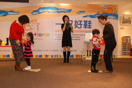 是的,好與否對成人的身體、生活都關(guān)系重大,對稚嫩的寶寶來說就更是關(guān)系到生長發(fā)育。那么寶寶腳的發(fā)育究竟有什么特點(diǎn)?父母該如何為寶寶選?近日,DorDor Horse健康童鞋品牌特邀請中國皮革和制鞋研究院高級工程師、知名兒童鞋專家丘理女士,在北京新光天地購物中心五層新光文苑舉辦《一雙好鞋——DorDor Horse健康品牌專家講堂活動(dòng)》,為家長們細(xì)心講解講解如何為孩子選購合適的鞋子以及健康兒童鞋應(yīng)該具備的特點(diǎn)。