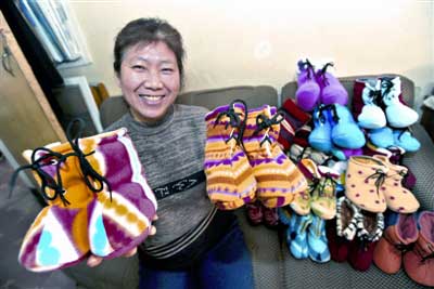 嘗到了甜頭,梁渝明索性在網上開起了網店,她還根據嬰兒腳的特點,對鞋子做了特殊處理,嬰兒穿上鞋子,任兩只小腳踢騰,鞋子都不會掉——憑著這一品質,她做的嬰兒鞋迅速暢銷全國。