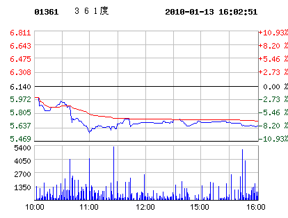 01月13日361度股票行情走勢