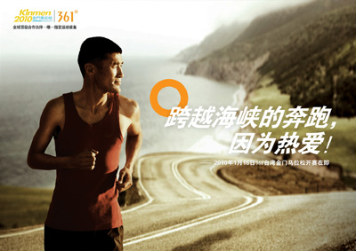 據悉,自2009年起,361°連續5年成為金門馬拉松全球頂級合作伙伴、唯一指定運動裝備供應商,361°也是首家贊助臺灣馬拉松賽事的大陸體育品牌。對此,361°總裁兼執行董事丁伍號表示:“作為中國民族體育品牌的代表,361°有責任推動中華民族體育事業的發展。成為金門馬拉松全球頂級合作伙伴,并不僅僅局限于推動體育事業發展與企業自身戰略需要,更深層的意義在于我們希望能夠通過金門馬拉松倡導一種‘多一度熱愛’的生活態度,用熱愛搭建起一座增進兩岸互動溝通和兩岸同胞親情的情感橋梁。