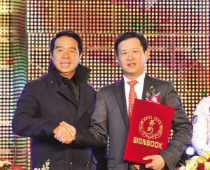 特步總裁丁水波(右)與伯明翰俱樂部主席楊家誠