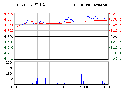 01月28日匹克體育股票行情走勢