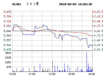 02月03日361度股票行情走勢