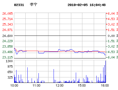02月05日李寧股票行情走勢