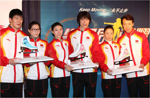 中國三對花滑選手手捧彩繪戰(zhàn)靴