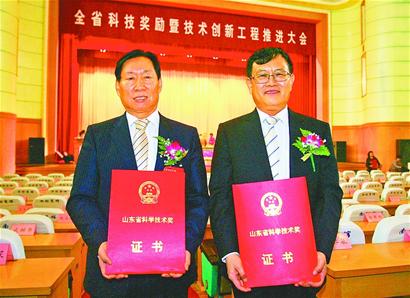 丁建生(右)獲2009年度山東省科學技術最高獎。
