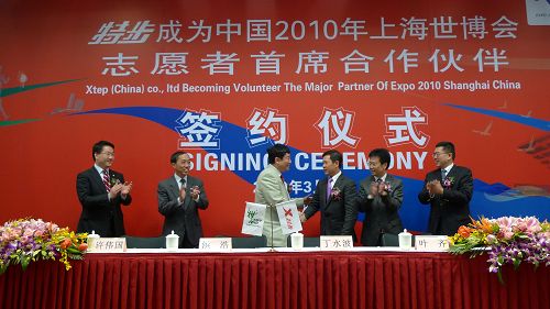 中國鞋網(wǎng)3月5日訊,近日, “中國時尚運動第一”特步正式與上海世博會事務(wù)協(xié)調(diào)局簽署合作協(xié)議,特步成為本屆世博會8萬園區(qū)志愿者指定運動服裝贊助商,為其提供總價值3600萬元的專用服裝,并因此被授予“上海世博會指定運動服裝”榮譽稱號。這也意味著,在這個全世界各國人民的世博會上,特步邁開了自己“背靠祖國,面向世界”的新步伐。
