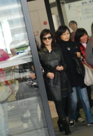 趙雅芝黑色皮衣搭配高跟鞋現身上海