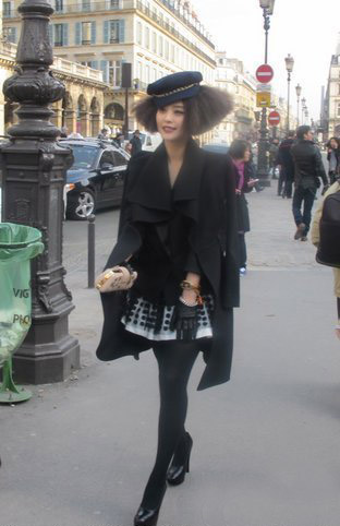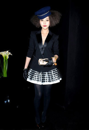 中國(guó)鞋網(wǎng)3月11日訊,范冰冰日前出席了2010巴黎時(shí)裝周(秋冬),Louis Vuitton成衣系列(Ready to Wear)時(shí)裝秀。她留著中長(zhǎng)的爆炸頭戴著藍(lán)色時(shí)尚潮帽,甜美的短裙搭配西服外套,黑色長(zhǎng)絲襪高跟鞋,打扮得前衛(wèi)驚艷亮相,看起來(lái)時(shí)髦靚麗,大受寵愛(ài)。