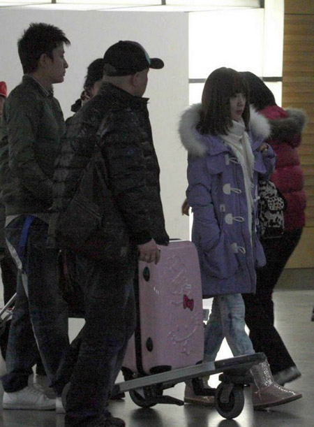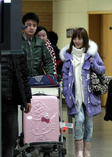 李小璐腳踏雪地靴深夜抵滬 何潔緋聞男友全程相陪