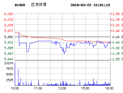 03月22日匹克體育股票行情走勢
