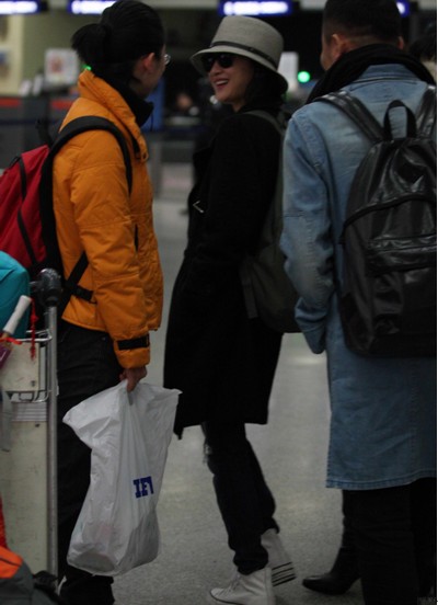 周迅分手后依然開朗 潮衣潮鞋亮相機場