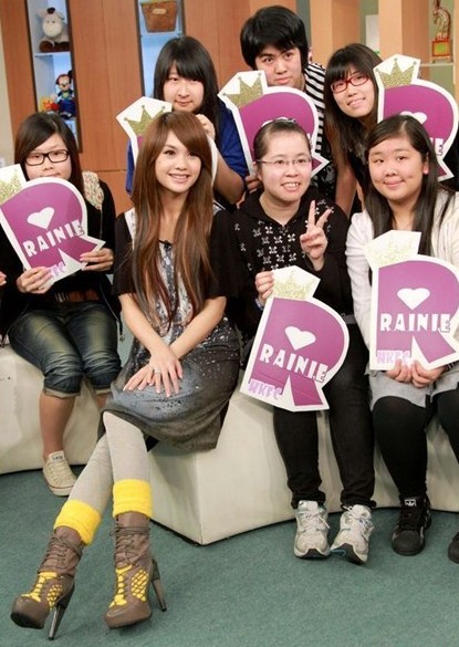 穿鏤空高跟鞋與粉絲合影