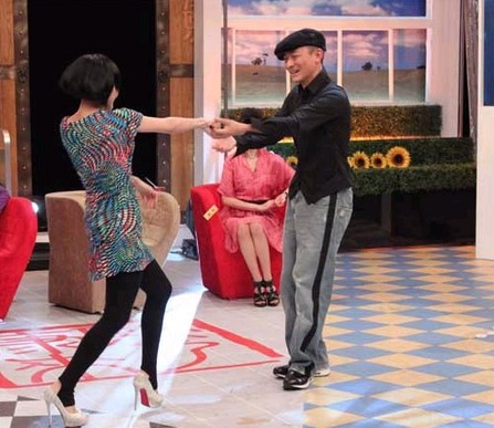 而一聽到劉德華也有在練國標(biāo)舞時(shí),小S立即使出渾身解數(shù),馬上從椅子上跳下扭著國標(biāo)舞往他身旁貼上去,還與他十指交扣,現(xiàn)場(chǎng)相機(jī)快門聲響不停。小S把握難得好機(jī)會(huì),猛攻他的下體,先夾住他的下半身,再來一記前進(jìn)胯下,讓華仔哭笑不得。事后她對(duì)華仔的力氣大為贊美:“他完全撐得住我耶,上次跟康永哥跳這招,結(jié)果我整個(gè)人躺平在地上!
