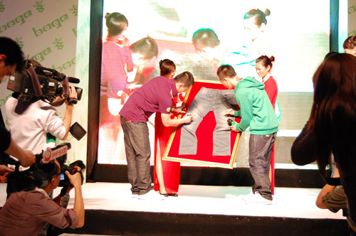 在簽約的三位代言人中,BAGE(八哥)品牌不僅僅是讓代言人做做廣告,更讓其參與到BAGE(八哥)產(chǎn)品開發(fā)設計之中。如此次發(fā)布會上發(fā)布的BAGE(八哥)2010年校園系列紀念版T恤,便是由BAGE(八哥)的校園系列代言人孫驍驍參與設計的。盡管孫驍驍因檔期臨時調(diào)整而無法到現(xiàn)場,但她還是通過視頻為BAGE(八哥)校園系列紀念版T恤的發(fā)布發(fā)來祝賀。而代言BAGE(八哥)品牌潮玩系列的亞洲舞王南賢俊,不但參與了BAGE(八哥)品牌潮玩系列的設計,還親自到發(fā)布會現(xiàn)場,與BAGE(八哥)總裁丁俊賢先生一起,為其代言和參與的潮玩系列南賢俊紀念版運動牛仔進行發(fā)布。