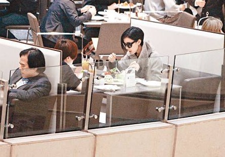 佘詩曼不停吃之余,又不時與助手談天