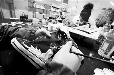 在趙公口某商場開店的“手繪鞋”創意者許敏告訴記者,她前年大學畢業后幾次都沒有找到自己喜歡的工作,于是決定把自己的油畫功底變得更市場化、大眾化一些。