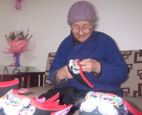 中國鞋網04月08日訊,虎頭鞋是吉祥如意的象征,送給孩子,護佑孩子健康成長,或在家中放上一雙有民俗特色的虎頭鞋,做祈福之用。但熟知這一民間傳統手藝的人寥寥無幾,市場上純手工制作的虎頭鞋成了緊俏貨。在梁山縣梁山鎮鄭垓村有一位癡迷于做虎頭鞋的老人,90歲的齊慶蘭老人從小就跟父親學做虎頭鞋,到現在技藝精湛,一針一線都是手工縫制,做出的虎頭鞋栩栩如生、神氣活現、圖案明麗、憨態可掬、別具特色,讓人贊不絕口,很多人都慕名而來求購。