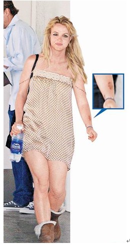 小甜甜布蘭妮著雪地靴逛街現(xiàn)傷痕 疑有自虐傾向