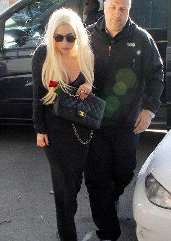 Lady Gaga身著黑色長(zhǎng)裙搭配厚底高跟的正常鞋服前往錄音