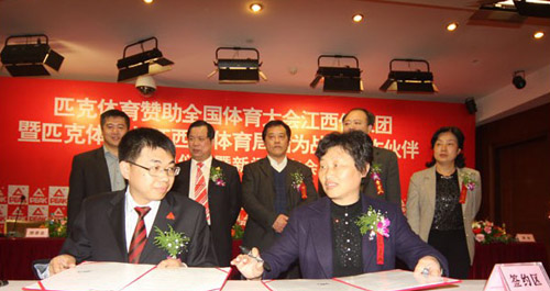江西省體育局、匹克體育用品有限公司相關負責人簽署戰略合作協議。