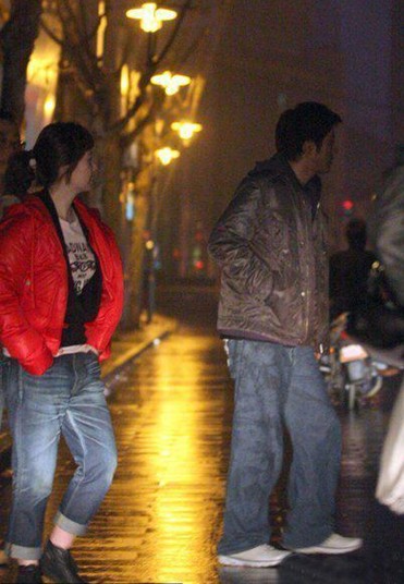王力宏新片殺青通宵泡吧 棕衣白鞋親密醉?yè)砑t衣女子