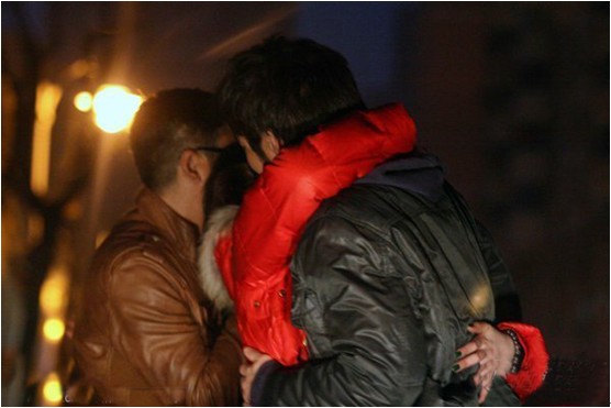 王力宏與紅衣女子曖昧擁抱
