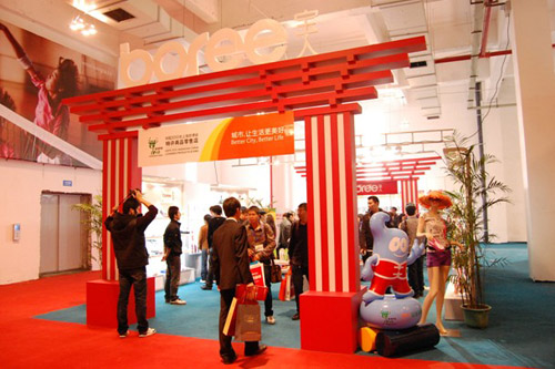 立足于“鞋業(yè)第三極——拖鞋”的寶峰鞋業(yè),在此次展館設(shè)計(jì)上以引人注目的世博會(huì)中國(guó)館的元素為背景,向人們展示了獨(dú)具匠心的拖鞋產(chǎn)品及時(shí)尚概念。
