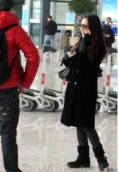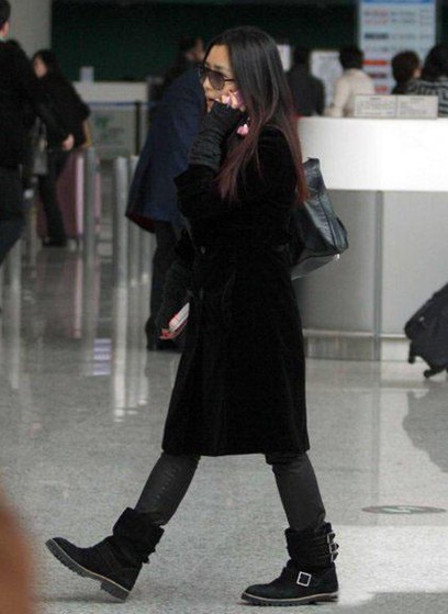 何潔穿著黑色鞋服高調(diào)現(xiàn)身機場