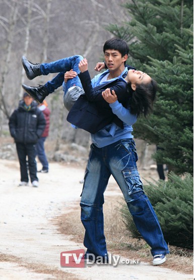 玉澤演穿著帆布鞋“新娘抱”文根英