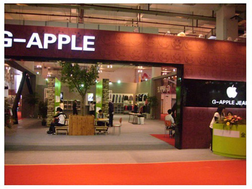金蘋果(中國)有限公司展館布置風(fēng)格突出,不僅展示了金蘋果品牌作為年輕一代生活休閑服飾散發(fā)的青春魅力,而且順應(yīng)當(dāng)下人類對低碳發(fā)展、綠色環(huán)保的經(jīng)濟(jì)發(fā)展要求。展館內(nèi)每個角落都放置綠色植物,細(xì)數(shù)一下,有十幾株之多,尤以展館中央掛滿蘋果的小樹為整個展館增添大自然生命氣息,充分表達(dá)人們對生態(tài)生活休閑的向往。