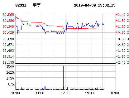 04月30日李寧股票行情走勢