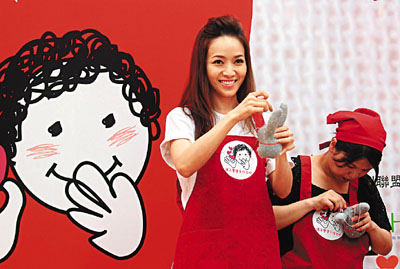 中國鞋網05月04日訊,號稱“臺灣第一美女主播”的侯佩岑臉上永遠都掛著一張干凈甜美的笑容,也享有臺灣第一甜姐兒之稱。侯佩岑心地善良,經常積極參加各類慈善活動和捐助活動。日前,甜姐兒穿亮麗的紅色上衣水臺高跟鞋可愛裝扮參加公益活動,呼吁社會各界要積極幫弱勢家庭。并且現場也親手縫制了襪子寶寶,表示要當作送給媽媽的母親節禮物。