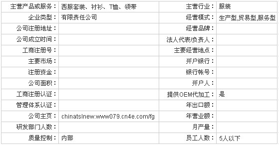 普寧市發(fā)格爾服飾有限公司自成立以來,本著以"名牌工程為龍頭科技興廠增后勁、以資本經(jīng)營擴(kuò)規(guī)模現(xiàn)代營銷搶市場、企業(yè)文化育素質(zhì)"的指導(dǎo)思想,堅(jiān)持以高科技含量、高檔次、高質(zhì)量不斷增加名牌的竟?fàn)幜Γ罅σM(jìn)國外先進(jìn)生產(chǎn)設(shè)備,培養(yǎng)高技術(shù)設(shè)計(jì)師群體技術(shù)推向高臺階,各式襯衫暢銷全國各大商場。