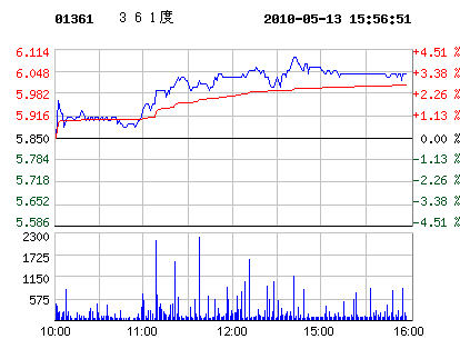 05月13日361度股票行情走勢