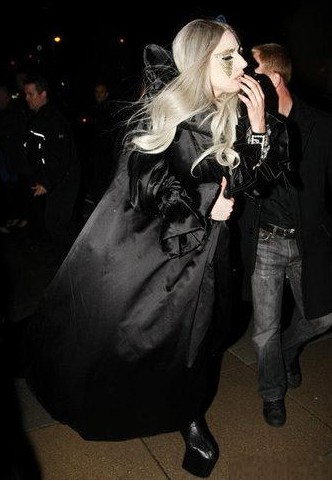 Lady Gaga穿著黑袍配高跟展女俠風范