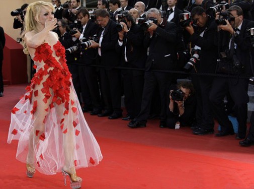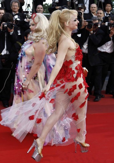 中國鞋網5月17日訊,第63屆戛納電影節,主競賽單電影《巡演》首映禮舉行。女星朱麗葉-安塔拉-姆茲裝扮夸張搶鏡,身穿超級暴露的透視薄紗花瓣裙翹臀畢露,腳踏透明的厚底防水臺超高高跟鞋,亢奮的她還不時送飛吻揮手,成為全場焦點。