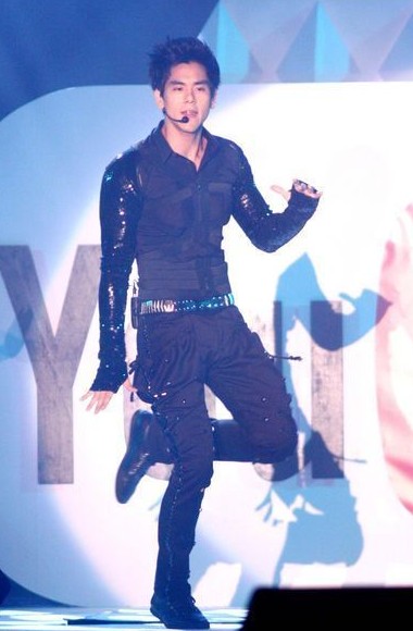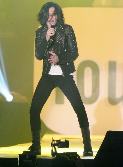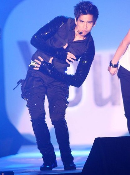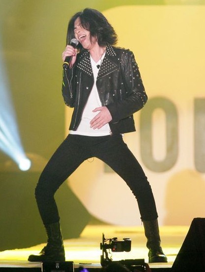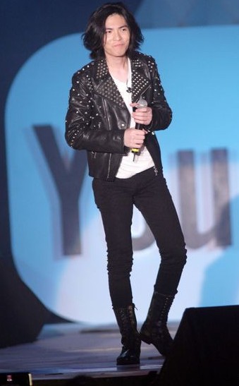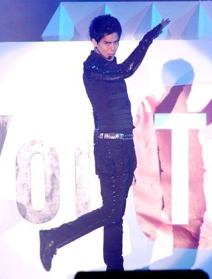 全星演唱會,蕭敬騰著黑色鉚釘皮衣黑色高幫鞋激情獻唱