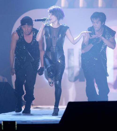 著裝性感的溫嵐不忘在臺上挑戰高難度的舞步