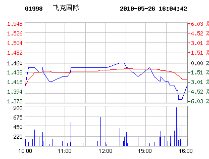 | 美克國際代碼:00953.hk | 1.400.10 7.69%2010-05-26 16:14:57 | 昨收:1.30 今開:1.31 成交:16,800最高:1.40 最低:1.31 均價:1.35流通:10.00億 市值:14.00億 換手:0.00% |