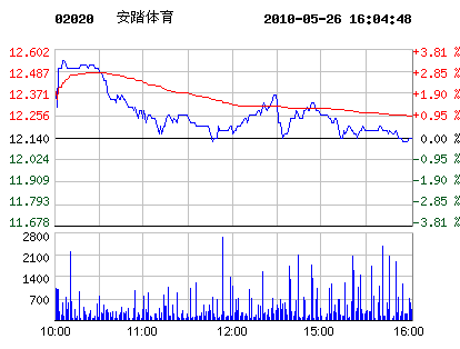 | 安踏體育代碼:02020.hk | 12.240.10 0.82%2010-05-26 16:15:06 | 昨收:12.14 今開:12.50 成交:144,039最高:12.56 最低:12.12 均價(jià):12.24流通:24.93億 市值:305.18億 換手:0.01% |