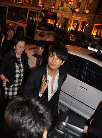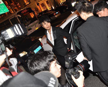 陳坤西裝革履下車遭到記者圍攻