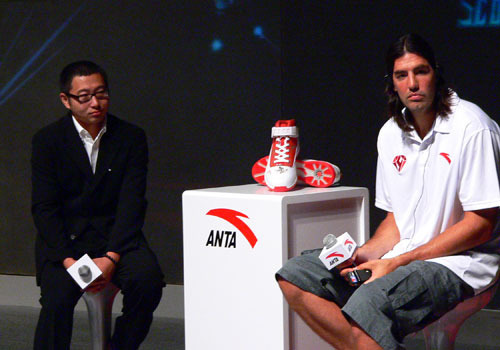 中國鞋網(wǎng)5月31日訊,北京時(shí)間5月30日,火箭隊(duì)著名球星斯科拉出現(xiàn)在世紀(jì)壇,閃耀歷程-安踏斯科拉中國行媒體見面會(huì)正式拉開序幕。見面會(huì)上,斯科拉就自己即將成為自由球員等中國球迷關(guān)心的問題一一耐心的做了解答,安踏體育用品有限公司執(zhí)行副總裁鄭捷向斯科拉贈(zèng)送了安踏精心打造的禮物--一雙鑲有四克拉鉆石的專屬“鳳凰”戰(zhàn)靴,以示再續(xù)前緣。